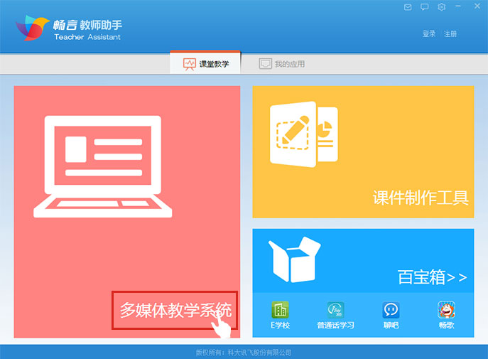 一、授课教学打开软件后,点击 “畅言多媒体教学系统”,即可进行电子课本和资源结合的课堂教学。