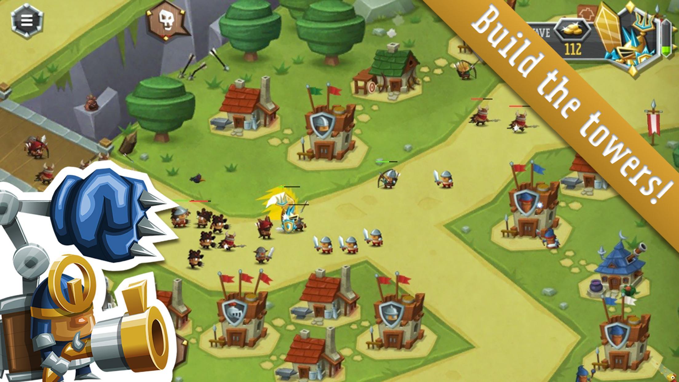 臣民之塔黄金版破解版(TowerDwellersGold)是一款卡通画风的塔防游戏,游戏以讲述童话故事一般的口气来开场,拉开了一个人类与怪兽相互斗争的大战帷幕。玩家作为人类一方要抵制怪兽入侵,在村庄的道路上修建军事塔,生产村民和战士出外守村。玩家可以使用强力的英雄角色以及特别魔法来对敌人进行大幅伤害,画面简单但一点也不会无聊。