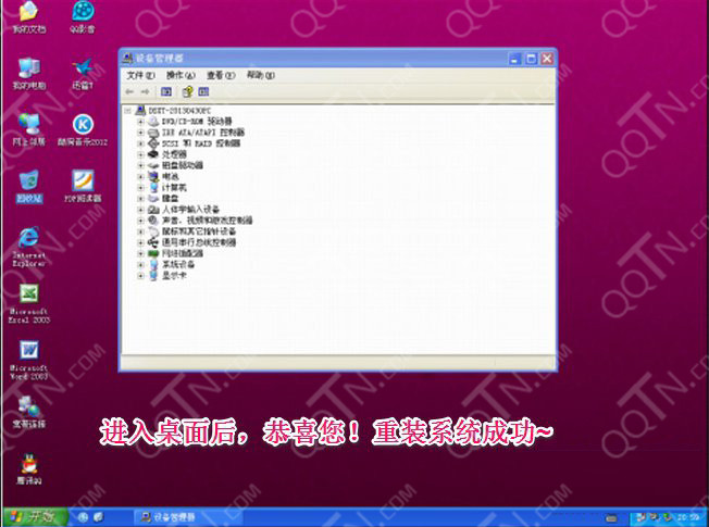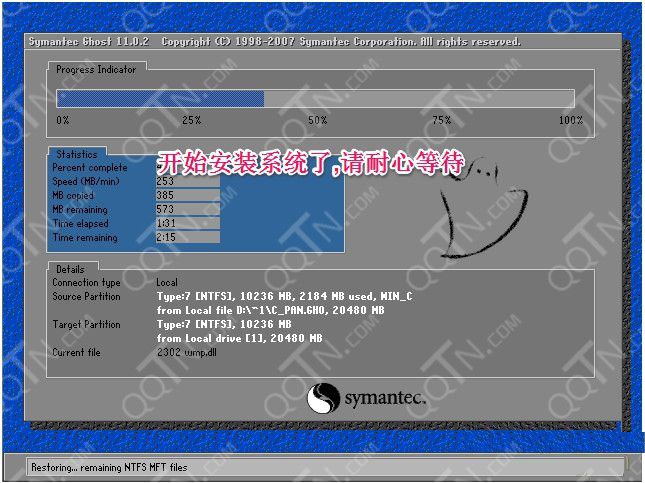 4.GHOST进度到100后,会再次重启电脑。然后正式开始安装系统。这些都是全自动的。安装系统部分截图如下所示: