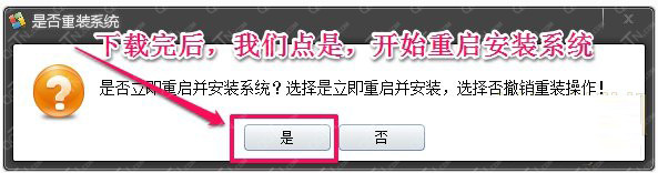 2.等待下载完成后,我们点击"是"立即重启并安装系统。