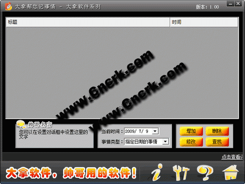 大拿软件系列的第四作,方便、实用的记事和提醒工具,主要有以下几大特点