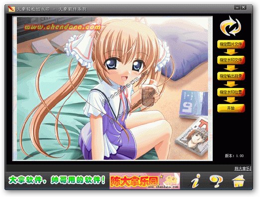 大拿轻松加水印 V1.00 简体中文绿色免费版 大拿软件系列的第二作,强大方便的批量图片水印添加工具,主要有以下几大特点