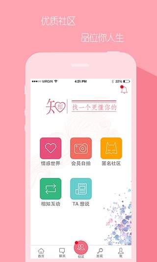 3、最干净的交友平台:致力于知己、情人等长期情感的建立,拒绝一夜情、粗俗、猥琐。