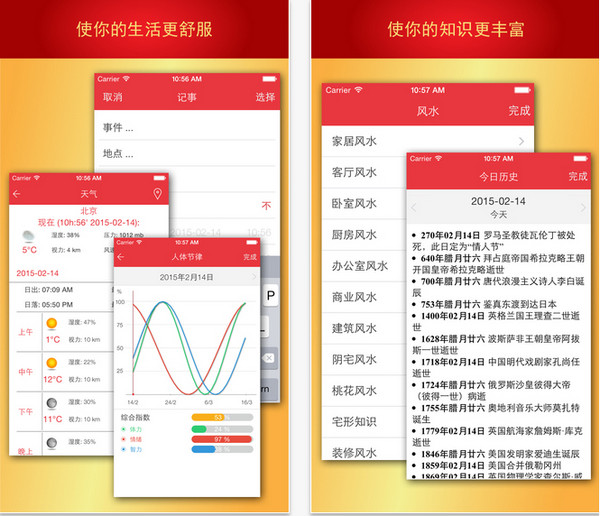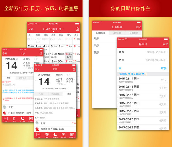 Chinese calendar是一款功能十分强大的万年历软件,我们除了可以通过这款软件查询公历,农历,黄历宜忌,节日,假日等等内容,也可以在这款软件上了解生辰八字、生肖分析、星座分析、周公解梦、历史今天等等这类信息。