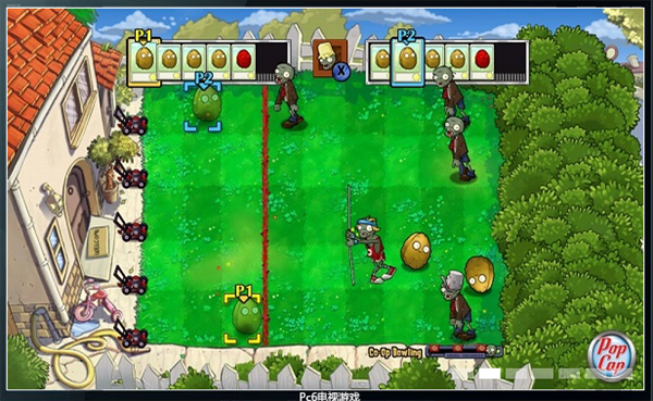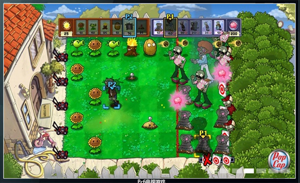 2、对战模式:两人各扮演植物与僵尸,双方的操作方法与冒险模式相同,只不过僵尸方的能量点数产生是墓碑,所产生的能量图示是粉红色的人脑。只要谁突破防守,谁就是赢家啦!