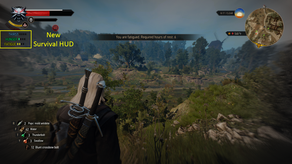 这个MOD让角色模型伤害更真实,这样一来杰洛特就可以造成和同等级人类敌人类似的伤害。MOD还加入了自由锁定模式、能力强化以及无锁定的特殊攻击等内容。此外,这款MOD使得游戏的时间线是可以调整昼夜长度的,过场动画和快速旅行的时间也被修改得更紧凑。之前基本没什么重量的物品也有重量了,无法携带超出库存上限的东西了。此外,还包括了生存元素比如食物、饮水、休息。