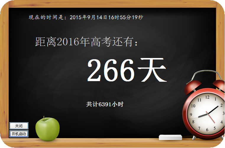 回形针高考倒计时下载 1.0 单文件版 回形针高考倒计时是一款专门为广大高中生设计的软件,使用这款高考倒计时工具用户可以清楚的在桌面上了解到距离高考还剩多少天了,时刻提醒同学们好好学习,备战高考。