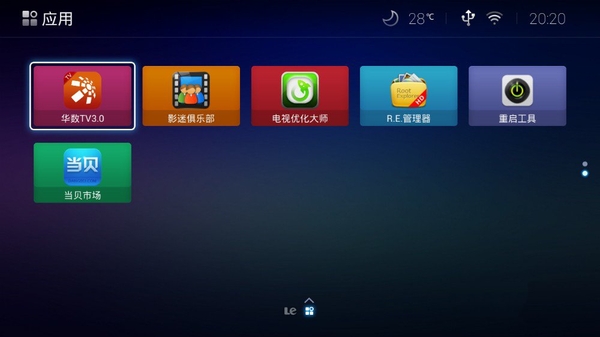 加入电视家浏览器、当贝市场、电视优化大师、RE管理器、重启工具;