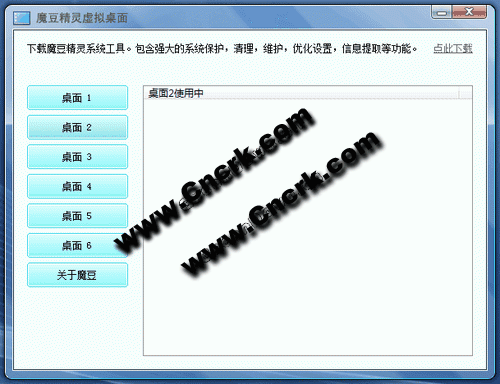 魔豆精灵虚拟桌面是白领与学生的最爱,能够轻松地畅游多个环境,在老板来的时候轻松的点一下按钮,立刻从欢快的游戏界面转换到紧张的工作之中去。让您无忧无虑的畅游在游戏与工作学习之中