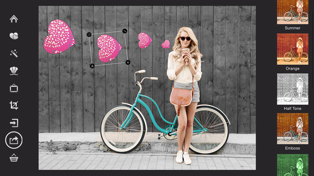 使用 Photo Desk,用户只需点按屏幕,即可快速编辑其图像。 Photo Desk.包含一组图章和贴纸、带魔法效果的画笔、漂亮的画框,以及实时画笔。 它还包含裁剪功能,可帮助用户在照片中裁剪出所需的部分。 此外,用户还可以按照喜好,导入和导出照片。