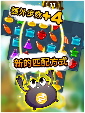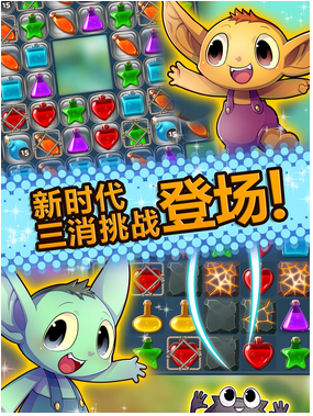 本作在玩法上与经典的《糖果传奇》没有太大差别,依然是置换式的三消玩法,只是把糖果换成了药水。也许是开发商觉得从玩法上已经很难创新,干脆就只在其他元素上做文章了。本作的特色更多是在画面和音效上,特别是游戏的视觉效果比较优秀。常见三消游戏的关卡地图一般都是2D的,而本作则做成了精美的3D竖版卷轴式地图。而游戏还支持玩家在多平台同步,游戏目前一共有150个关卡。另外,Potion Pop《药水消消乐》也比较社交网络的PK,玩家和朋友的关卡进度将被记录在关卡进度树上,非常直观。