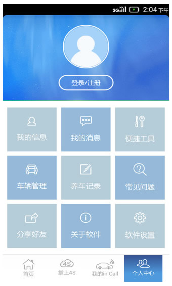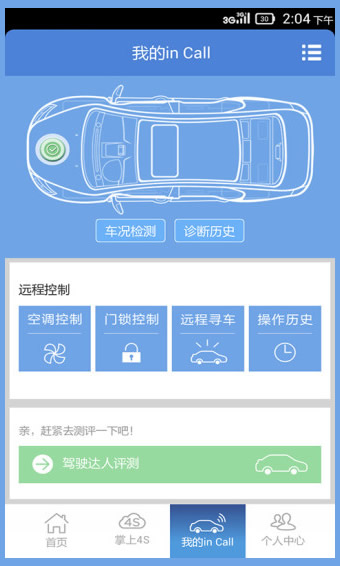 4.我的inCall:绑定车载终端,车主即可查询实时车况、查看车辆诊断报告、远程控制车辆、驾驶行为分析。