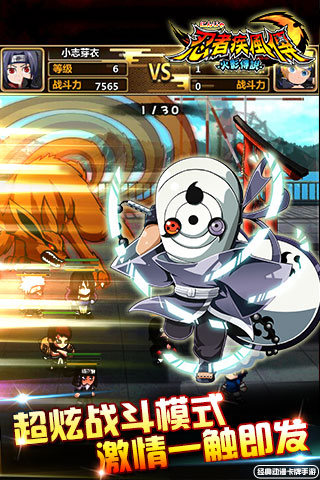 炫酷技能,霸气无边,六道轮回,万人竞技赛开启!《忍者疾风传》给您带来与众不同的游戏体验!绝对忠于原着的漫画剧情,完全还原动漫经典场景,上百种技能等你来选。超华丽技能特效,每个忍者拥有独一无二的专属技能,完全遵从忍者本身特点,还原每个忍者独特的能力与特色。独特的卡片插槽玩法,告别枯燥的装备与堆积属性,让选择更多,使每个忍者都成为独一无二的存在。