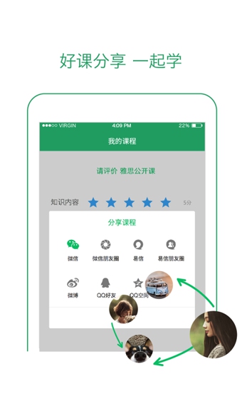 课程分享,支持推荐课程到朋友圈、微博、QQ;