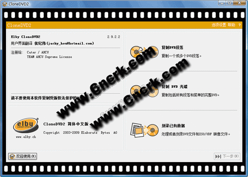 CloneDVD 能够将任何原始 DVD 标题截取、转换、写入单一 DVD,具备高效率、高影像品质的影片拷贝功能,能够将声音文件、字幕文件与影片合而为一,内建操作精灵介面,连初学者也可轻松操作