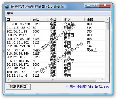 免费取得最新代理IP,同时自动验证IP速度(数字越小,速度越快)。由于是第一版,功能上可能不太完善