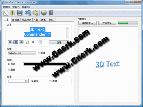 3D Text Commander将平面的文本转变为漂亮的3D文本,让您创建属于您自己的3D文本 Logo、横幅、消息,并将它保存到您的电脑上,以便用于您的网页、文档和演示。