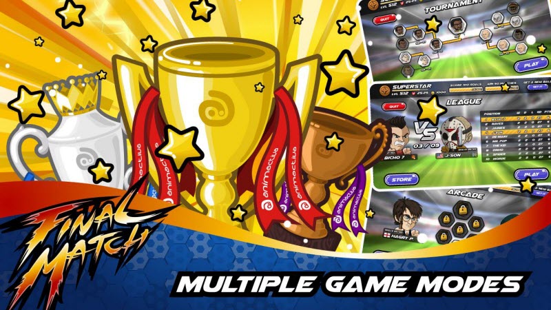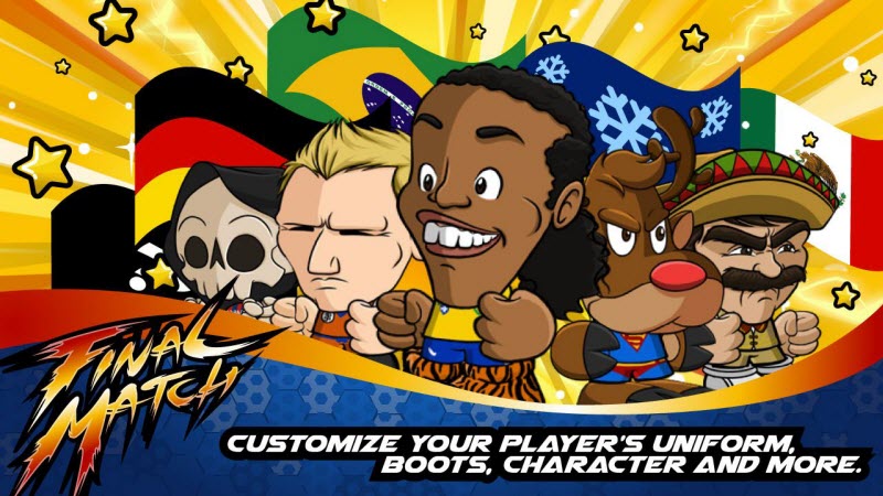《最终之战 Final Match》是一款简单好玩的足球竞技游戏。这是一个1V1的足球游戏,你将和你选择的对手将来一场势均力敌、针锋相对的比赛。谁将成为传奇,谁将一球成名?你的唯一目的就是将球送入对方球门,或头球,或踢球,或是来一记大招爆射。游戏简单耐玩,快来试试吧!