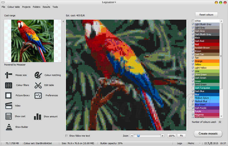乐高积木化工具Legoaizer是一个免费的应用程序创建的图像马赛克蓝图用乐高积木和Ministeck部分。以最大限度地控制颜色,使用砖,砖的选择和大小。