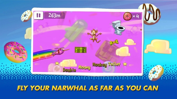 天空之鲸是一款Nickelodeon开发的一款冒险类游戏,玩家通过控制独角鲸在天空中收集甜甜圈,使用云和疯狂的物体弹得更高,更远,同时大量的连击数,也会让独角鲸有不可以思议的跳跃。