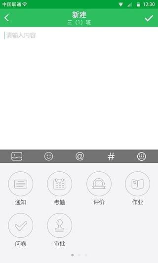 3.现在所有的功能消息都能通过一个入口新建,你可以轻易地在班级主界面找到它;