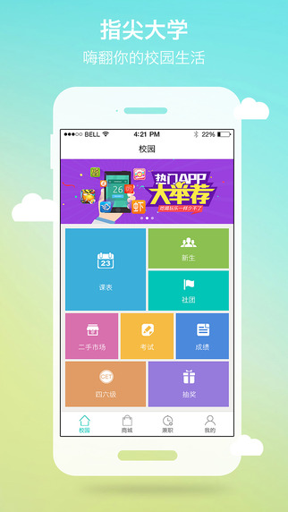 4、学习园地:就业指导、学习资料、课程讲座、考试信息、院系通知、校园新闻,从此一手掌控,随心而阅!