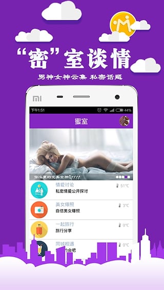 【密室谈情】在这里,型男靓女、屌丝女神,热贴不断,不管你的爱好有多奇特,在这里小伙伴等着你。