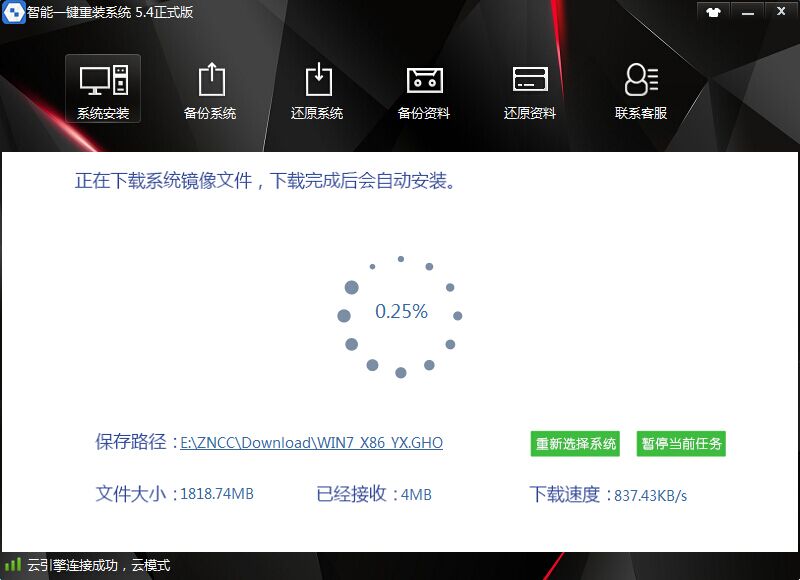 进入下载页面后,就无需在管了,程序下载完毕后,会在10秒后重启,重启过程中会安装系统