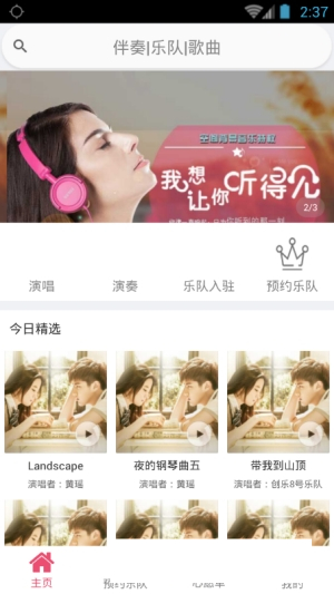 乐队主唱软件拥有专业的乐队团队入驻,支持音乐会演唱、在线演奏、乐队预约、MV音乐发布等功能。