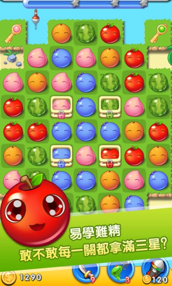 《水果萌萌消》是一款消除类的手机游戏,通过选中相同的水果图案相连即可消除得分,游戏操作非常简单。作为一款休闲,简单治愈系的手机类游戏,清新的界面风格,萌贱的人物和表情,对于工作繁忙没有太多的时间进行复杂的游戏的人群,对动动指尖就能轻松过关游戏情有独钟。《水果萌萌消》有多种地图样式和道具系统、大大加强了游戏的可玩性,是一款老少皆宜的休闲佳品。
