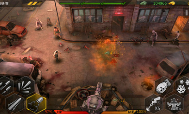 3.摇杆控制人物行走,右下角的虚拟键可以对僵尸进行射击;