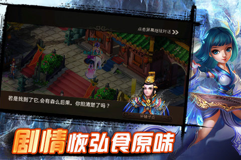 上古神话唯美场景尽淋漓,集市交易诚不欺。 畅爽PK王霸气,敌对势力战到底。 剧情恢弘食原味,各大门派铸传奇。 经典伙伴相随路,时装坐骑万人迷。 炼妖聚气增实力,天脉修元险化夷。即时组队共患难,互助同行好兄弟。方外之壤生财道,副本活动皆给力。轮回塔里斩妖魔,上古世界何人敌!