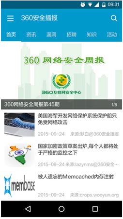 360安全播报平台由360网络攻防实验室整理发布的软件,该软件为安全工作者及时全面的提供有效信息,360安全播报中集合了众多安全资讯,让用户一次看个过瘾,轻松学习成为安全达人。