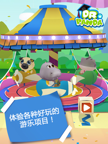 熊猫博士游乐园来啦!你准备好和熊猫博士一起开心的玩耍了吗? *关注熊猫博士官方微信: DrPandaGames 有得吃,有得玩! 熊猫博士游乐园有太多好玩的了!你可以控制各种乘骑工具,决定它们的方向和速度,一切尽在你掌握!你还可以制作美味的爆米花,创作自己的棒棒糖等等! 奇妙的彩绘和变装! 挥洒你的想象力,用彩绘和变装把动物客人们打扮的滑稽搞笑或是时尚酷炫,一切你说了算!定妆后,客人们还会在游乐园里到处炫耀他们的新造型哦! 精彩的游戏和奖励! 你可以通过各种精彩的游戏收集星星来换取各式酷炫的奖励哦!同时,别忘了还有隐藏的星星等你发现,所以处处留心,勇敢的去探索吧!