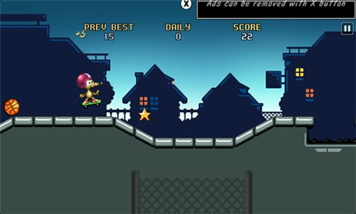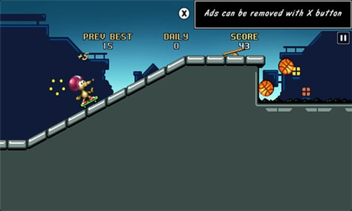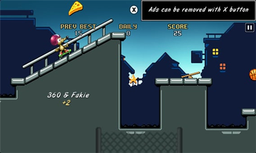 老鼠滑板是一款休闲益智类手机游戏。在游戏中有一名老鼠踩着滑板在玩,你则要操控这只滑板老鼠一直向前进,做各种有趣的动作,穿过这些障碍物,最终达到目的地,很有趣的一款休闲类游戏,快来试试吧。【软件特点】
