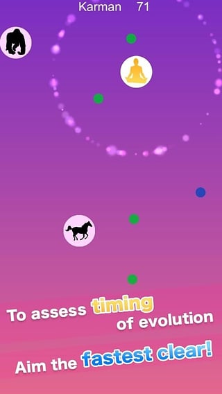 游戏开发者也是一位投身佛家的弟子,因此把游戏和禅学结合的十分紧密。游戏假定玩家一出生便是最低等级的生物,需要进行修行,收集一种叫“业”的东西。在游戏中“业”就是四种颜色的小圆点,每种颜色都有不同的分数。