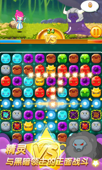 雾霾不光侵袭了人类,也侵袭了精灵界,精灵们团结起来与黑暗势力大作战。创新的三消对战关卡,在传统三消关卡上增加了更多的挑战,让玩家感受博弈的乐趣。