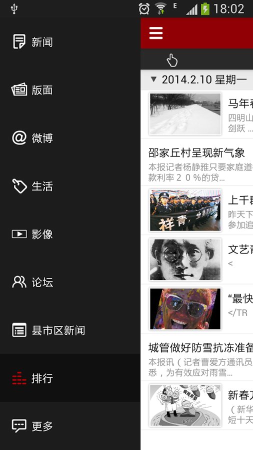 2、贴心服务,新闻、版面、图片、微博四种读报模式随意选择;