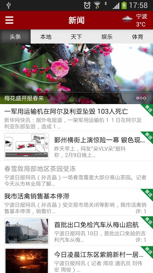 宁波日报官方应用即时发布《宁波日报》采集的各类资讯,并有微 博、天气、评论、分享、检索等多种功能,是您进入移动互联时代的独特助手。