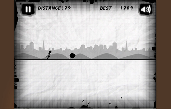 游戏操作简单,玩家通过触动屏幕上下方的虚拟按钮控制小人跳跃或滚动并躲过障碍即可。