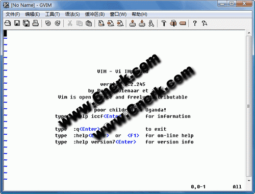 Vim是Linux上的著名的文本编辑器,他是早年的Vi编辑器的加强版。这个gVim是windows版的,并且有了标准的windows风格的图形界面,所以叫g(graphical)Vim。这是一个国际版本,会根据安装的平台自动选择相应语言包,支持中文及其各种编码,连界面也是中文的,请放心使用。这个极具Unix特色和风格(simple is the best)的编辑器相信会给您带来不同的感受