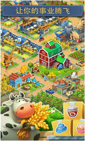 《梦想小镇:Township》是在安卓系统的平板电脑或者手机上,一款独特的结合了城镇建设和农场经历的模拟经营类游戏!《梦想小镇破解版》实现你的愿景,打造完美宜居的小镇!收获庄稼,运行加工设施,并出售商品来发展你的小镇。探索矿场,获得资源和收集文物。 开设咖啡馆,电影院和其他社区建筑,促进人们的社交生活。你准备好成就梦想了吗?游戏采用清新画风,建筑、树木和人物的造型都比较具有Q性,背景音乐也很悦耳,还惨杂着鸟叫声,仿佛真正置身于一个广阔自由的大庄园中。游戏支持原生中文,所以玩起来可以很快地上手,和早期的模拟经营作品一样带有一点“收缩”性,也就是说经营的内容无论如何扩展,最终都会回归到唯一的主线。游戏没有过多的附加要素,纯农业、纯农庄、纯经营,给人感觉还是很质朴的。