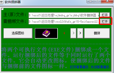软件捆绑器下载 1.0 绿色版 软件捆绑器是一款功能强大的文件捆绑软件,可以帮助用户将多个exe文件捆绑在一起,并会自动更换捆绑文件的图标,当用户运行捆绑文件后,该文件中的所有软件都会自动运行。