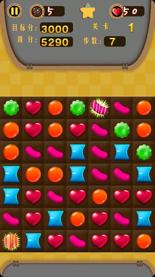 《糖果快乐消》是一款可爱好爱的单机版消除游戏,游戏玩法很简单,点选两个或多个相邻的相同糖果消除,在有限的时间或者步数获取更多的分数,顺利进入下一关。这里有超过100个关卡,每个关卡都有不同冒险历程等着你哦!让我们一起来进行糖果消除大作战吧!【游戏特色】