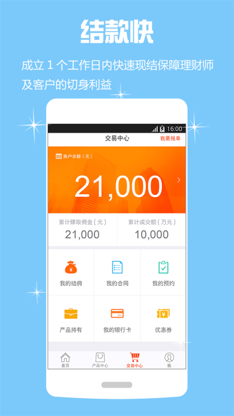 结款快——成立1个工作日内快速现结保障理财师及客户的切身利益。