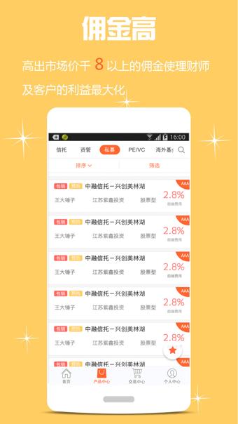 佣金高——高出市场价千8以上的佣金使理财师及客户的利益最大化。
