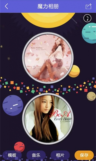 支持一键式发送照片,立即生成动感音乐相册;