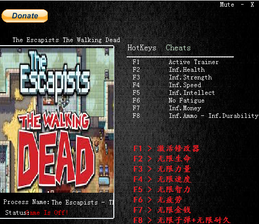 脱逃者0.96是一款同名游戏的辅助软件,脱逃者修改器是包含了游戏中玩家所需要的8项游戏修改工具,玩家可获得无限生命、无限力量等功能,帮助玩家更好的体验游戏。