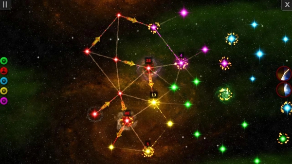 星星繁殖(Starlink)是一款具有星系统治的即时战略游戏,开始的时候你需要控制一个星星来进行对其他星星进行入侵并成为自己的队伍!游戏一直在考验你的操控与逻辑能力!快来试试吧!