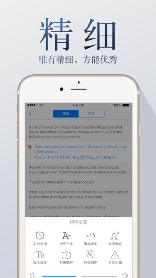 托福听听app托福考生量身定做的听力模拟练习、逐句精听与听写功能,认真地对每一个句子进行精听,吃透句子,方能从根本上提高托福的听力水平。提供的所有听力备考材料,都以句为单位进行了精确的切分,因此大家在练习时,可以一句一句反复回听,直到吃透为止。我们和你一样,认真、精细!